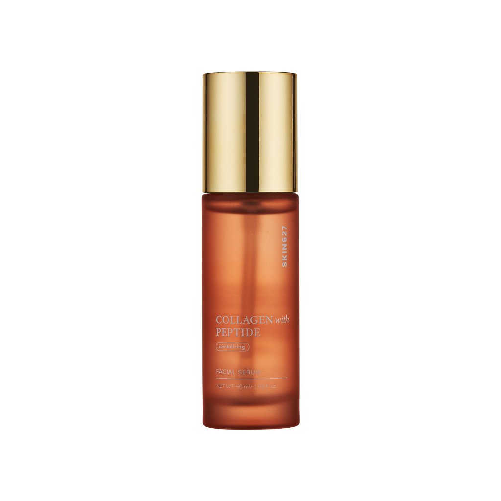 SKIN627 COLLAGEN with PEPTIDE Facial Serum je pokročilé anti-aging sérum, které kombinuje sílu hydrolyzovaného kolagenu a komplexu aktivních peptidů. Toto inovativní sérum je určeno pro zralou pleť, která potřebuje intenzivní regeneraci a redukci vrásek. Díky extraktu z granátového jablka a probiotickému komplexu poskytuje víceúrovňový omlazující efekt a zlepšuje strukturu pokožky. SKIN627 sérum s kolagenem a peptidy intenzivně regeneruje, viditelně zpevňuje pleť a dodává jí zdravý a mladistvý vzhled.